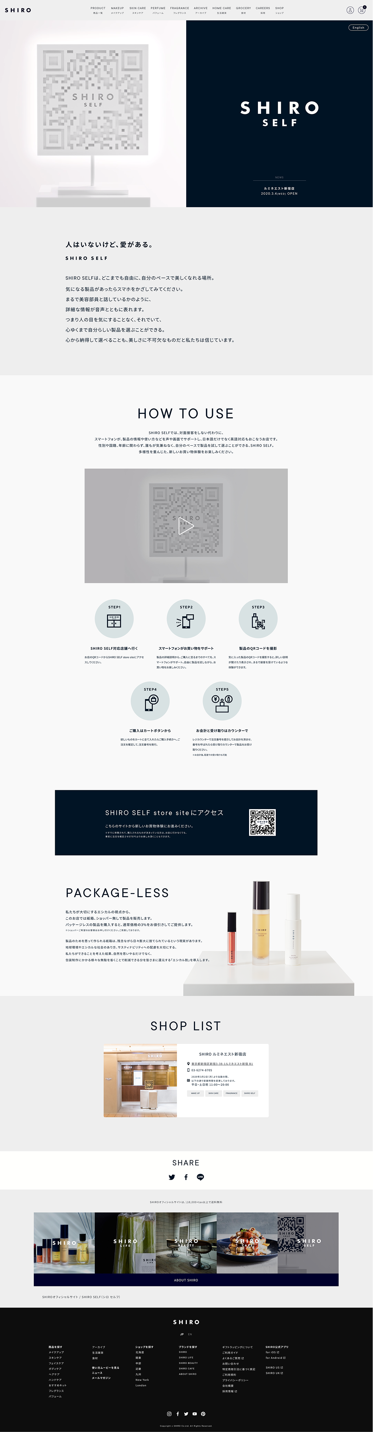 チャット形式での応対や音声ガイダンスを活用したUI設計により、対人での接客と同等のお買い物体験ができるサービスを目指しました。SHIROのブランドコンセプトを踏襲し、紺と白をベースにユニセックスでクリーンなトーン&マナーに。より世界観に没入しながら、お買い物を楽しんでいただけるデザインとなっています。