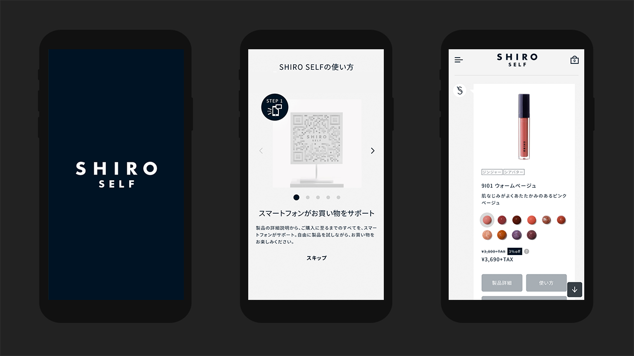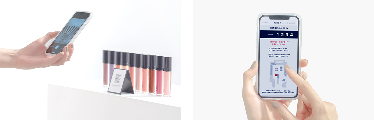 ユーザーが自身のスマートフォンでWeb Appにアクセスし、プライスカードに記載されているQRコードを読み取ると、チャットや音声により製品詳細が提供される仕組み。希望する製品をカートに入れると、カウンターにいるスタッフの元に情報が届き、会計〜製品受け取りをすることができます。