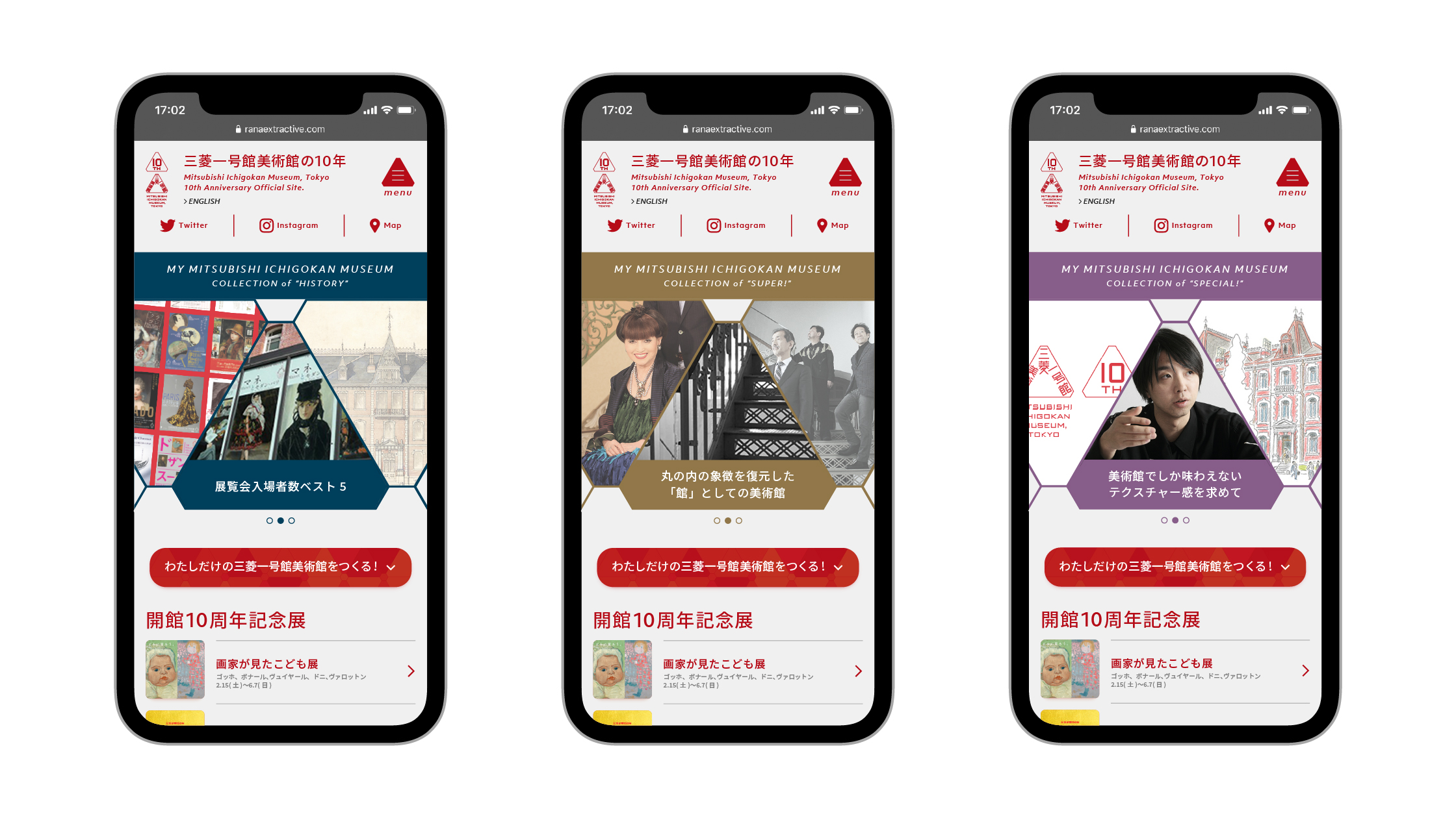トップページのデザインと表示する記事を選択して、自分だけの10周年記念サイトをつくることができる「わたしだけの三菱一号館美術館」というカスタマイズ機能を実装。また各記事を独立させることで、どこからでも読み始められる構成にしました。