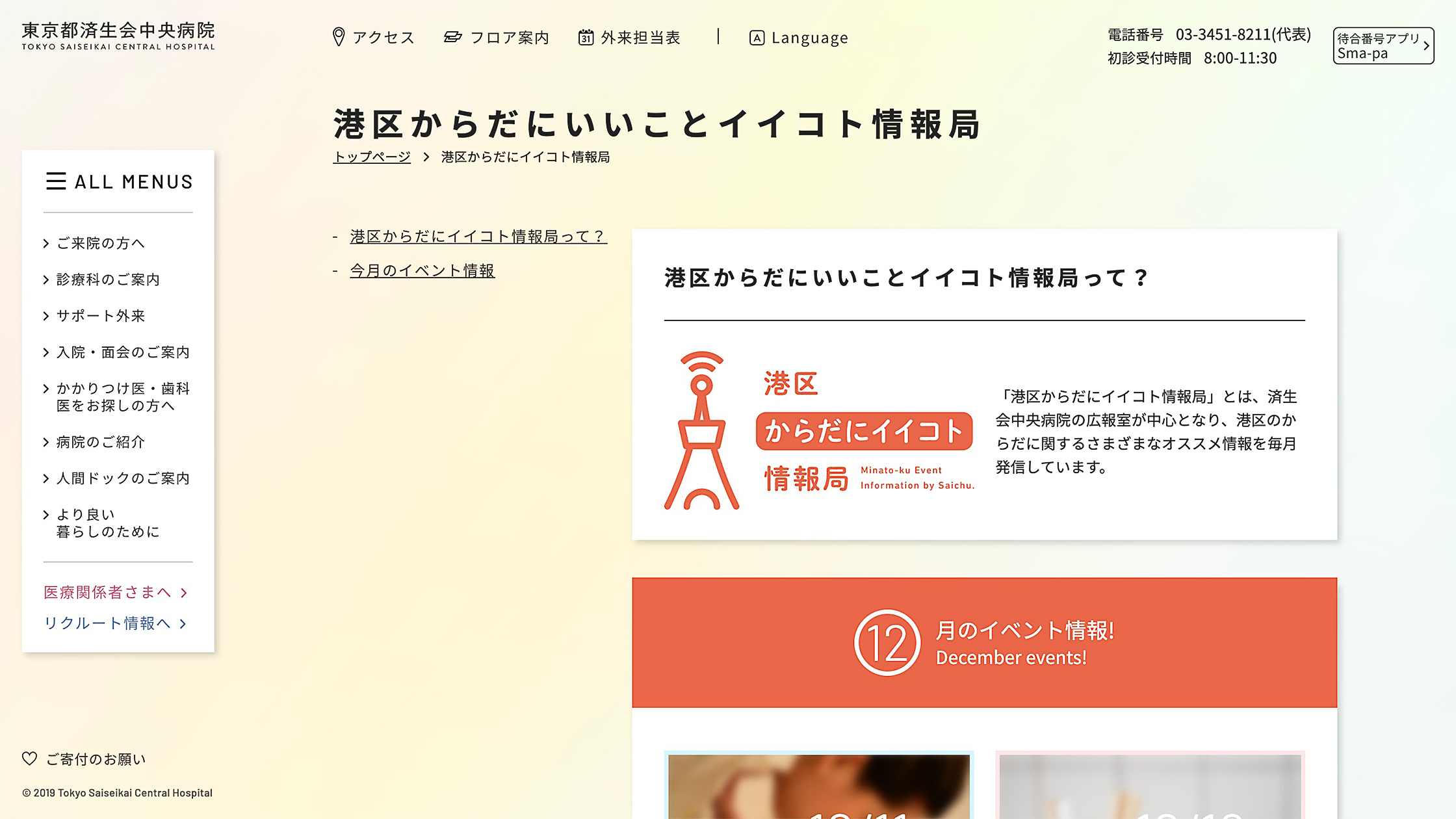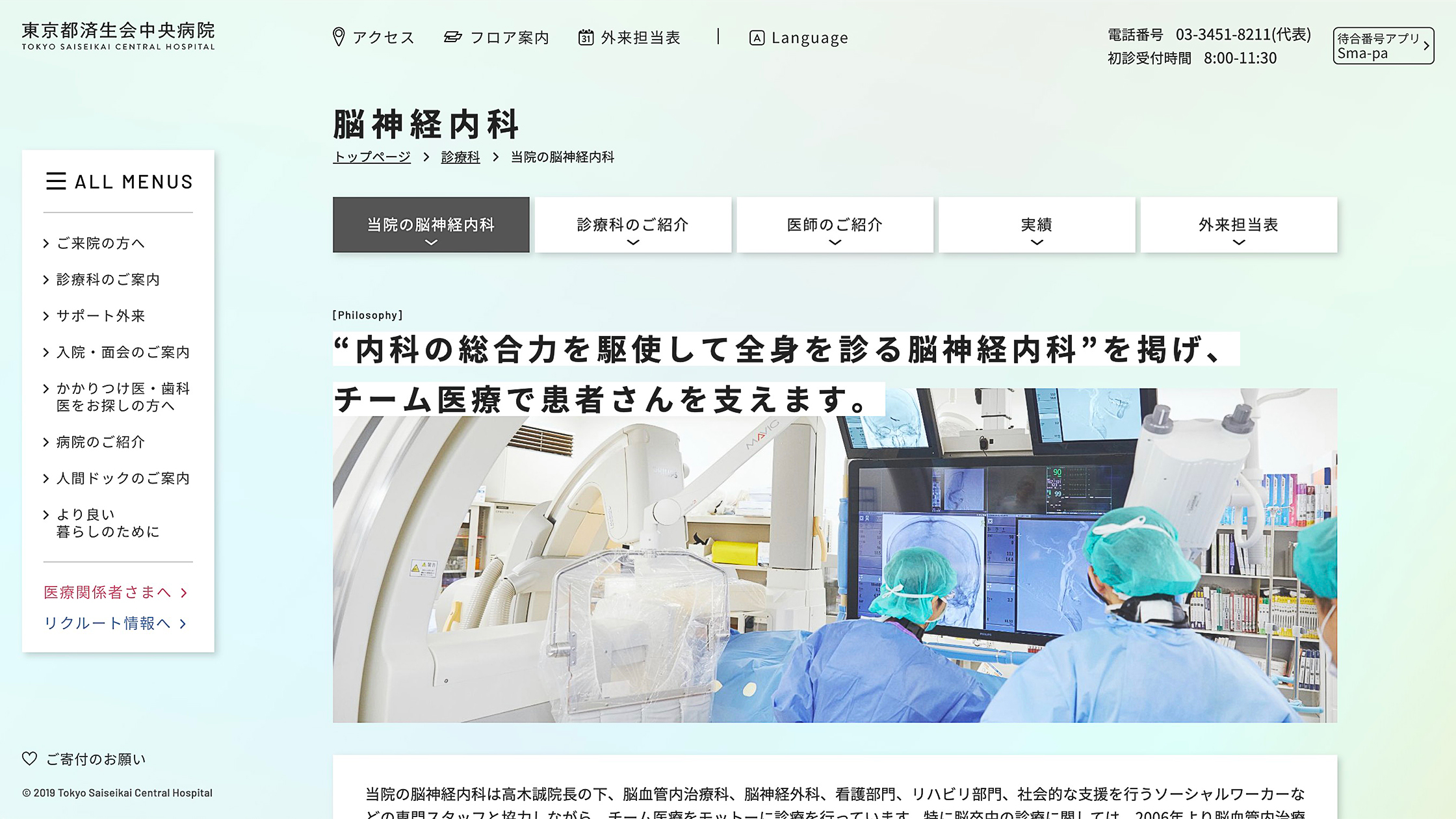 各診療科のページにキャッチコピーをつけるなど、専門知識のない一般生活者でも病院に親しみを持てるコンテンツ設計にしました。